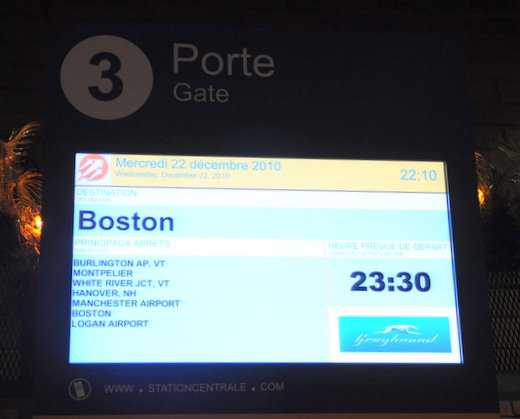 Cet hiver, avant notre retour en France, pour découvrir de notre monde (et éviter les taxes d'aéroports québécois) nous prenons l'avion depuis Boston, principale ville de l'état du Massachusetts aux États-Unis. Et tant qu'à y être, pourquoi ne pas faire une petite visite. Nous partons donc en autocar de Montréal tard le soir...