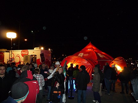 Les sponsors étaient eux aussi présents : Coca-cola ( nous avons donc récupéré une bonne dizaine de bouteilles de coca-cola et deux magnifiques bouteilles collector lumineuses!!!)