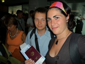 Arrivés dans le hall il faut passer les douanes, une petite heure d'attente pour passer le premier contrôle : " rien à déclarer? Quel est le but de votre voyage?", puis 1h30 pour obtenir notre permis d'étude : " J'ai présentement 5000 personnes en ligne sur le plancher" dixit le douanier, pendant ce temps nos valises tournent seules en boucle sur le tapis... Et Claude et Claudia attendent, inquiets, de l'autre côté. Mais enfin c'est bon on a tous nos papiers, ça y est on est vraiment arrivé !!!