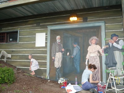 Murale en cours, les artistes sont encore à l'oeuvre :