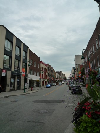 il se trouve sur les marches du marchand général, le batiment orange au centre.