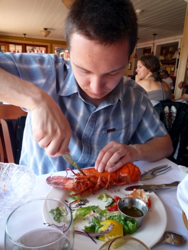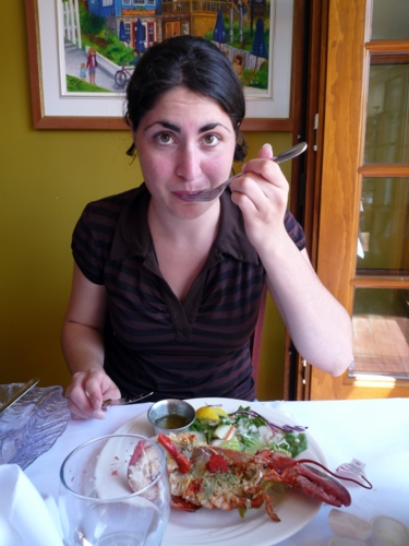 Pour se remettre de toutes ces émotions direction le restaurant! Nous avons la ferme intention de manger du homard.. on se demande pourquoi... bon au moins maintenant on sait que ce n'est pas pratique à manger, et qu'on n'aime pas ça !!! C'est toujours ça de pris!!!