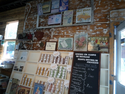 Nous avons poursuivi notre visite par un tour dans le marché où étaient vendus pêle-mèle des produits de l'artisanat local et des miels, vinaigres, liqueurs de sirop d'érable, patés et autres composés de canard .
